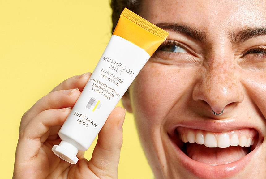 If you want an eye cream that acts as a dark circle corrector, visibly minimizes the look of crow’s feet and fine lines, and reduces puffiness, you’re in luck. But the magic doesn’t stop there. Our under-eye cream is made for all skin types, including sensitive skin, making this the anti aging skincare product you didn’t know you needed. Get to know our Mushroom Milk better aging eye cream below.