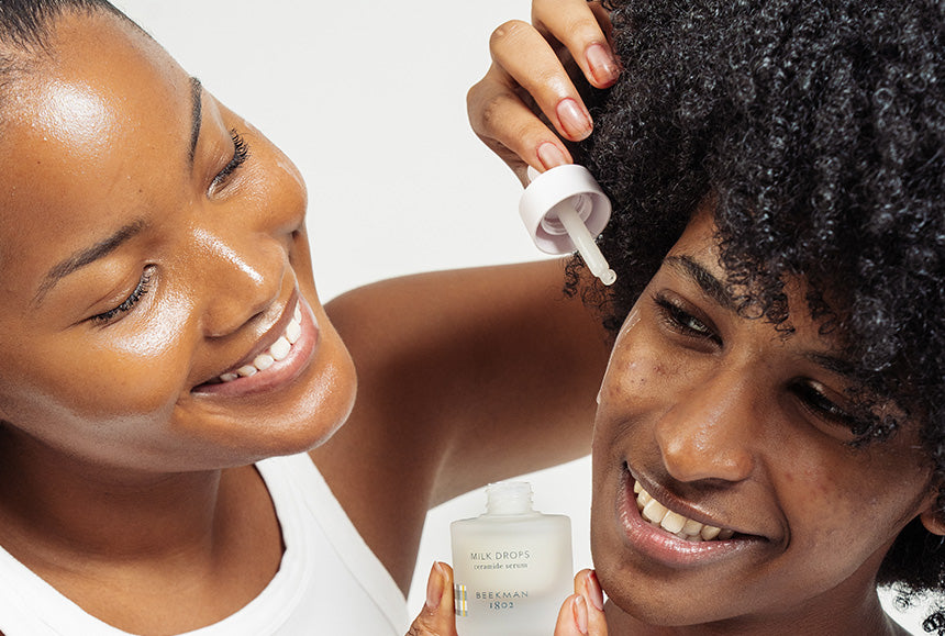 Secondly, we want to highlight our ceramide serum, Milk Drops. This deeply nourishing skin barrier serum features ceramides, squalane, hyaluronic acid and fruit enzymes. This formulation strengthens the skin barrier, locks in moisture, plumps and hydrates the skin, while gently exfoliating. And to get your most radiant complexion, we can’t help but suggest you pair it with our favorite face cream below.