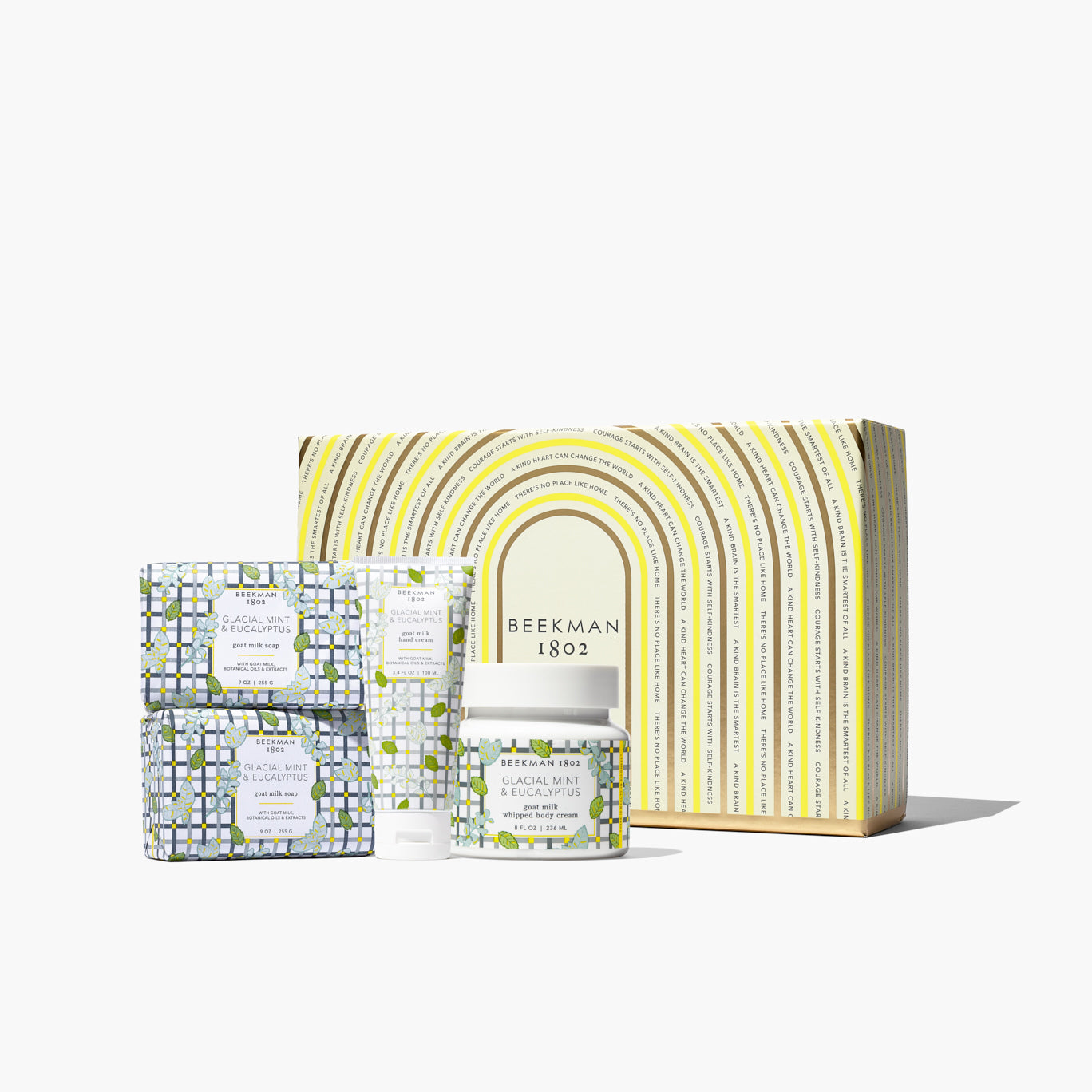 Featuring a breathtaking array of bestselling bodycare from our microbiome-friendly, spa-inspired fragrance, this set is the ultimate pampering experience for you or a loved one. Powered by our proprietary goat milk blend for lasting hydration and scented with cooling mint and soothing eucalyptus to soothe the skin and the senses.