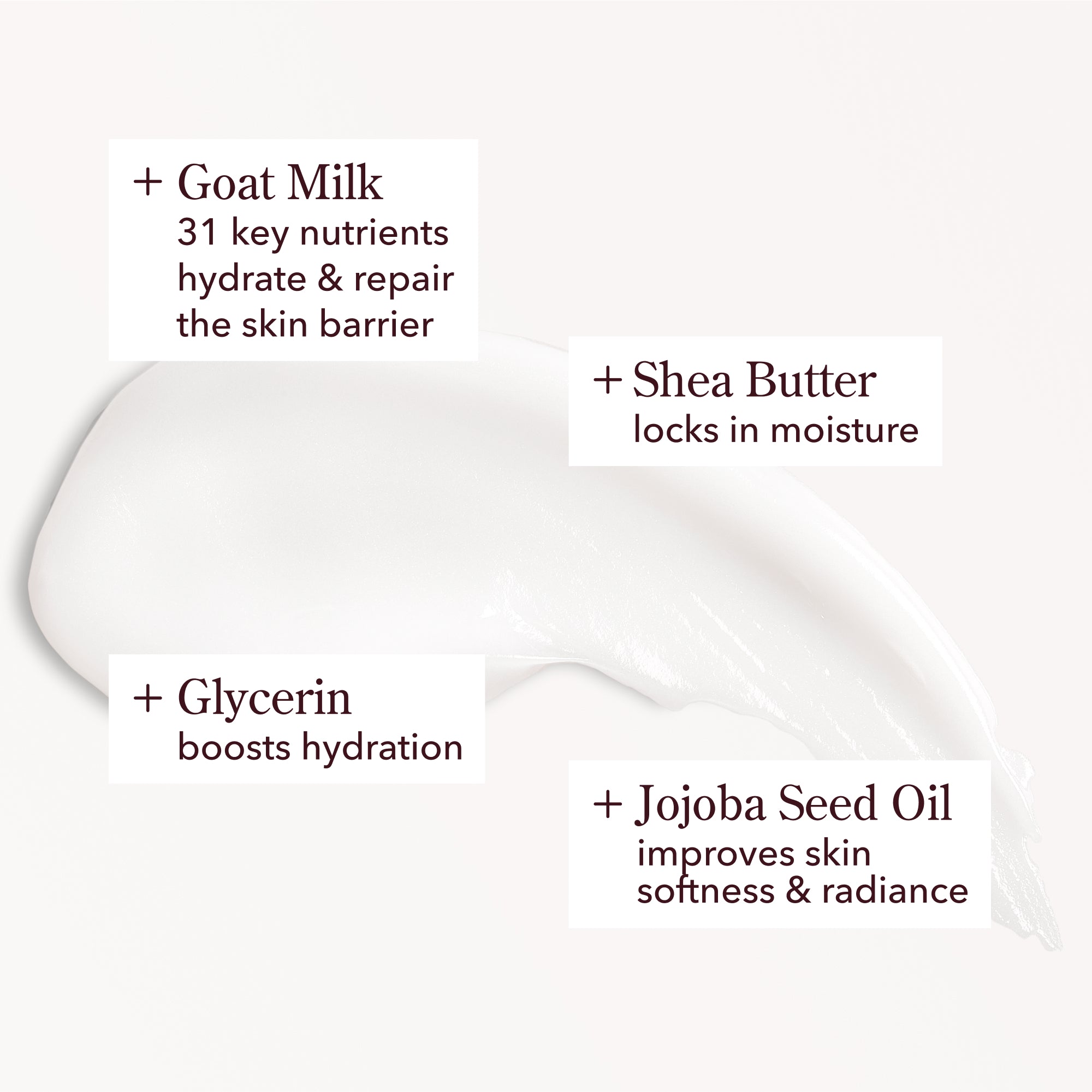 - 31 key nutrients in goat milk hydrate and nourish the skin barrier