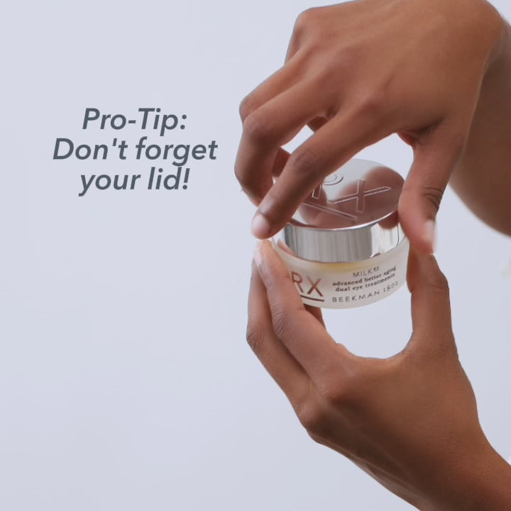 Milk RX Dual Eye Treatments features an under-eye wrinkle-smoothing cream and an eyelid lifting serum for full circle eye repair—with zero irritation.