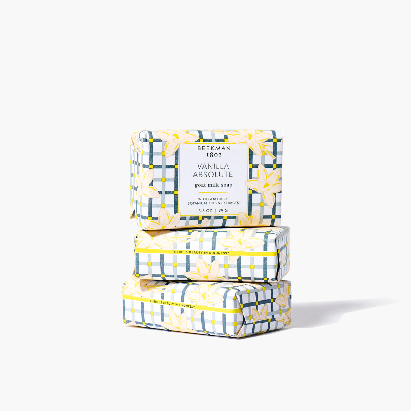 Triple-milled refers to a meticulous soap-making process where the soap is passed through a milling machine three times to provide a finer, denser, and longer-lasting soap bar. Our triple-milled vanilla goat milk soap creates a rich, creamy lather for a full body pampering experience.