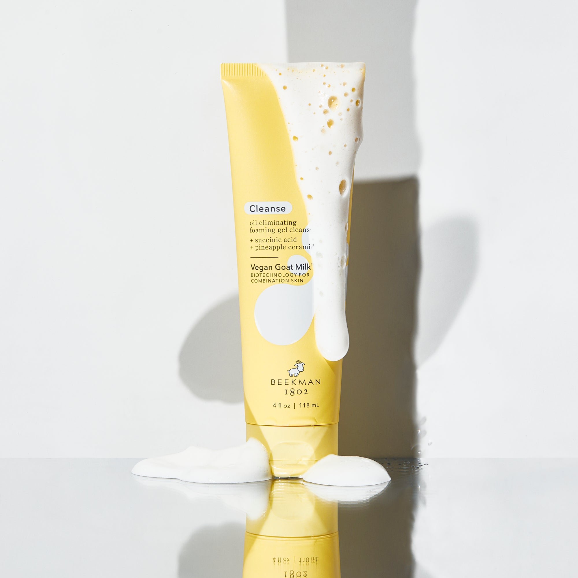 Helps cleanse deeply, control sebum, and eliminate oil for clearer, more balanced skin. This Oil Eliminating Foaming Gel Cleanser is part of our new Shine-Free for oily/combination skin routine. Goodbye, oiliness!